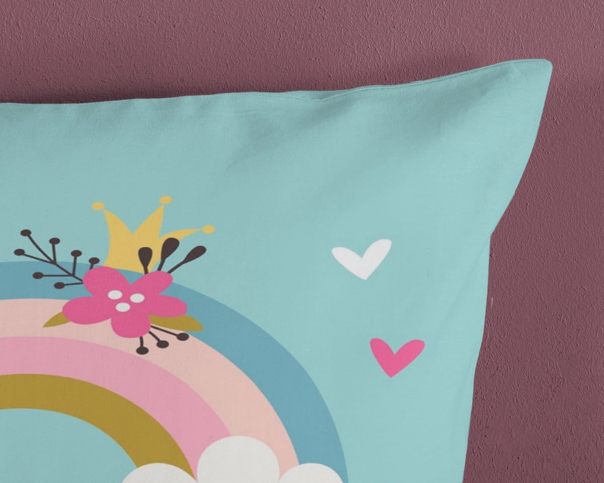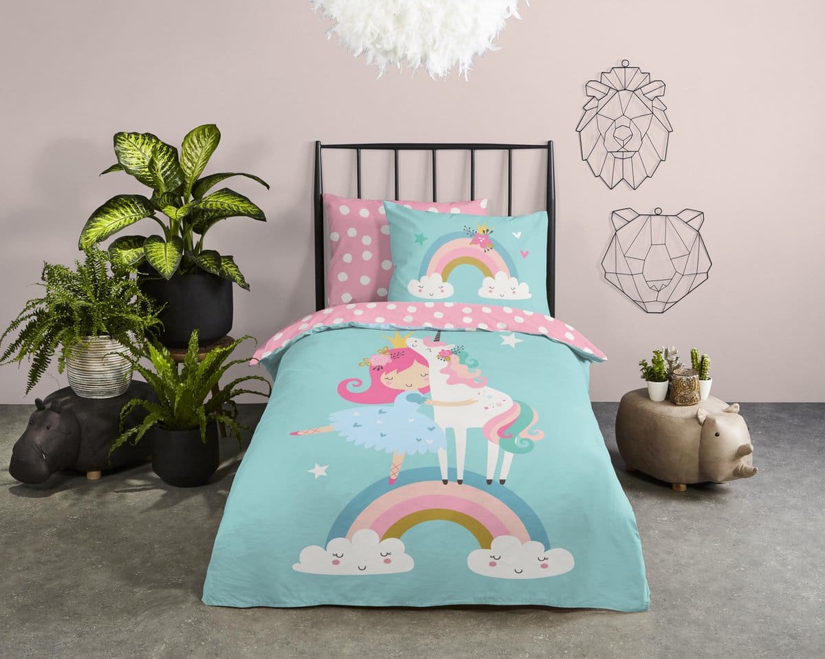 Kinderdekbedovertrek “Heaven” van Good Morning met eenhoorn met regenboog, in de kleur “Multi” is gemaakt van 100% katoen. Deze kwaliteit is ademend, vochtabsorberend en voelt zacht en soepel aan. Dit leuke kinderdekbedovertrek is een toevoeging aan iedere kinderkamer en is geschikt voor ieder jaargetijde. Het katoenen dekbedovertrek is heerlijk koel in de zomer en geeft warmte in de winter.