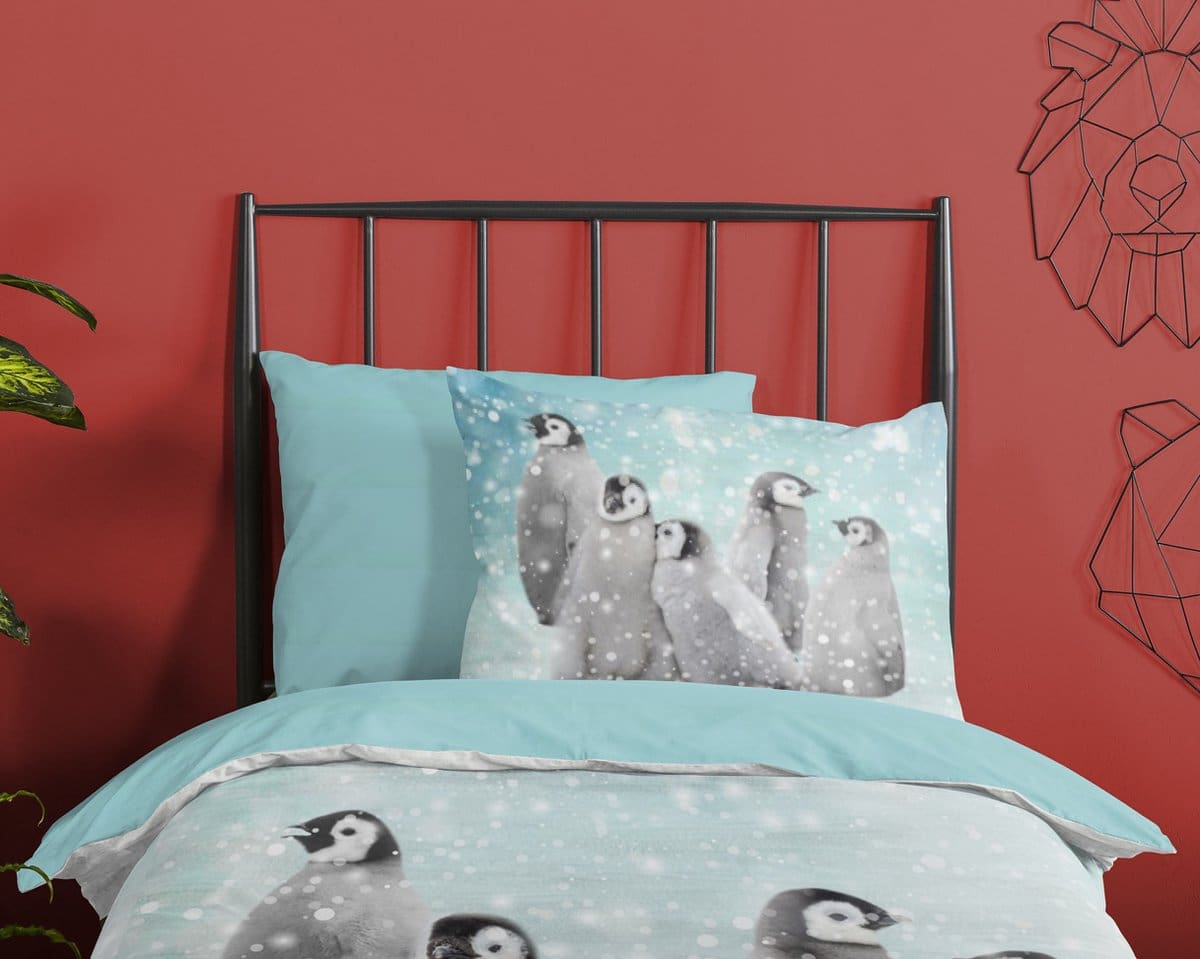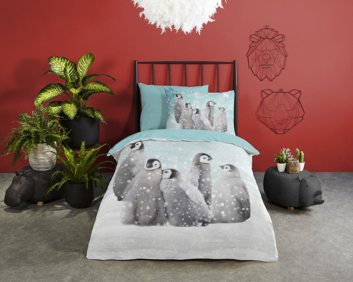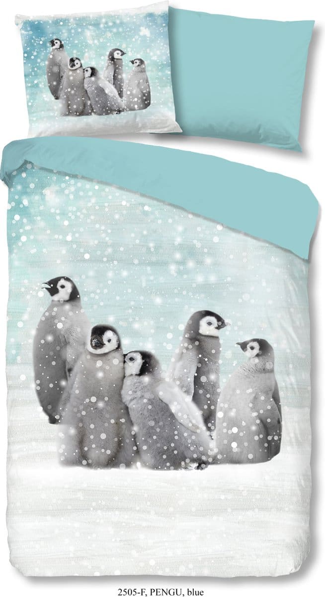 Flanellen Kinderdekbedovertrek “Pengu” van Good Morning met pinguins, in de kleur “Blauw” is gemaakt van 100% geruwde 100% katoen/flanel. Doordat het katoen licht opgeruwd is, ontstaat er een zacht laagje. Deze warme, zachte stof is ademend en vochtabsorberend. Dit leuke kinderdekbedovertrek is een toevoeging aan iedere kinderkamer en is uitermate geschikt voor de koude wintermaanden.