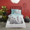 Dit betreft een 1 persoons kinderdekbedovertrek (140×200/220 cm + 1 kussensloop). Deze set bestaat uit 1 dekbedovertrek dat geschikt is voor dekbedden van 200 tot 220 cm lang en 1 kussensloop van 60×70 cm. Het dekbedovertrek heeft een dubbel doorlopende instopstrook van 20 cm en een totale lengte van circa 240 cm.