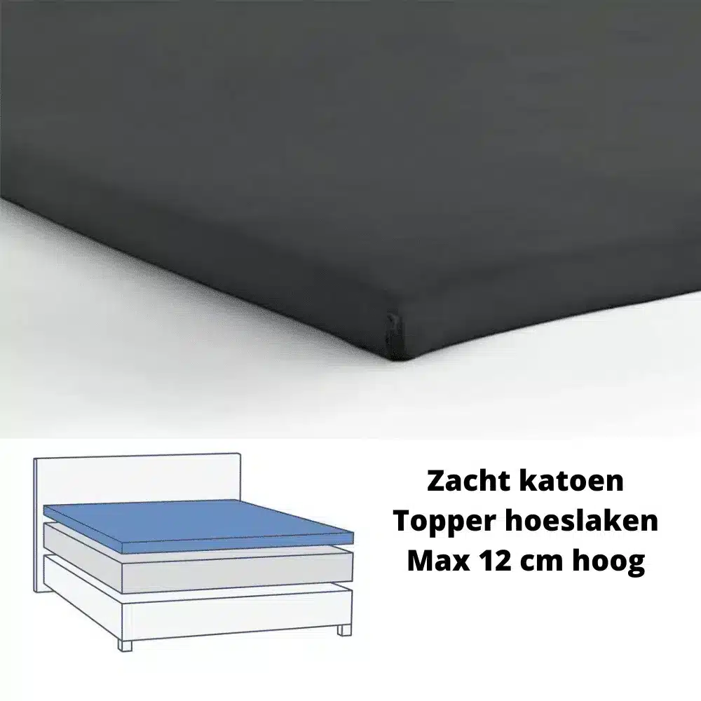 Met een hoekhoogte van 15 cm en geschikt voor matrassen van 5 tot 12 cm hoogte is dit hoeslaken topper geschikt voor vrijwel elke topmatras – van boxspring tot waterbed en voor formaten tot hoeslaken 90×200. Het elastiek rondom zorgt dat het hoeslaken altijd strak en glad om je matras blijft zitten, zonder dat de hoeken omhoog komen.