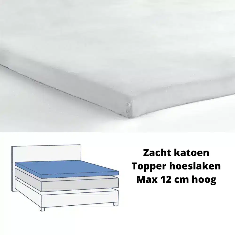 Ja, het elastische randje rondom en de hoekhoogte van 15 cm maken het ideaal voor een 90×200 topper en voor diverse andere afmetingen.
