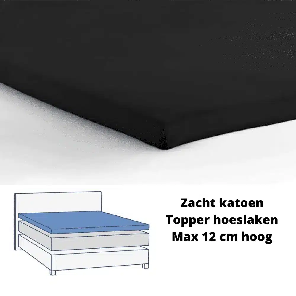 Sleeps Zacht Katoenen Topper Hoeslaken Zwart 180×200 cm – Glad Katoen – Perfecte Pasvorm – Heerlijk Zacht