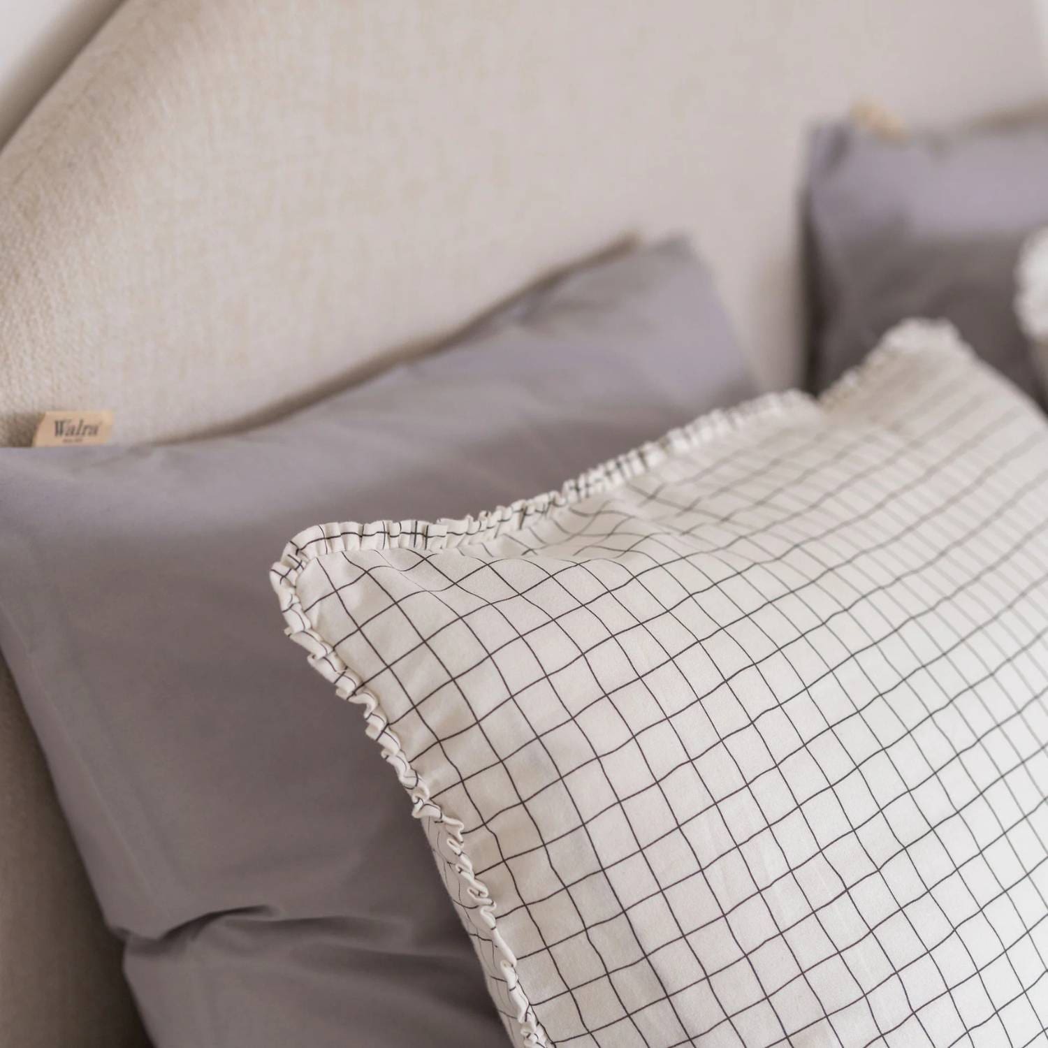 Het klassieke ruitjespatroon in wit en antraciet geeft je slaapkamer direct een professionele, rustieke en toch chique uitstraling. De subtiele ruffles aan de kussenslopen voegen een speels en verfijnd detail toe – precies de luxe touch waar je naar op zoek bent.
