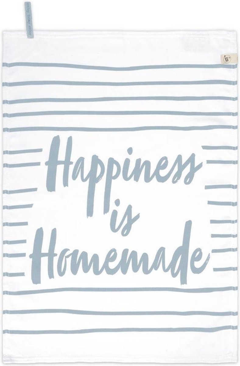 De subtiele strepen in combinatie met de tekst ‘Happiness is Homemade’ geven jouw keuken direct een luxe uitstraling. Of je nu voor een moderne, landelijke of industriële keuken kiest, deze theedoek past er feilloos bij. Verkrijgbaar in diverse kleuren, zodat je kunt matchen met je servies, je keukengordijn of je handgrepen.